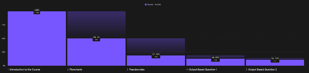 And after video 3 the funnel operates constantly, users who watch upto 3rd video, 90–80% users watch the next video and it keeps happening till the end on the playlist.